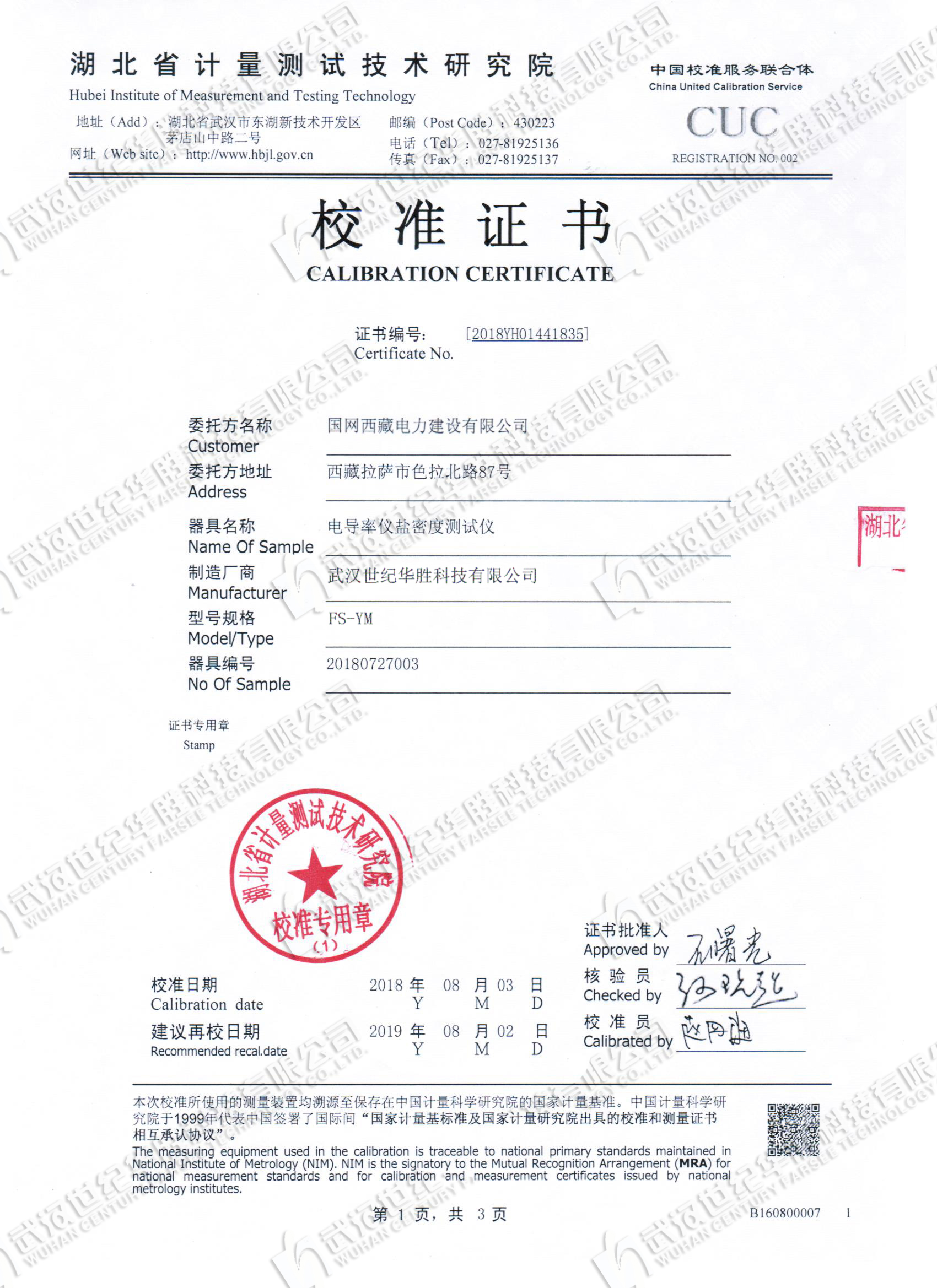 ? ? ? 2.?設(shè)備3年免費(fèi)檢定或校準(zhǔn)。